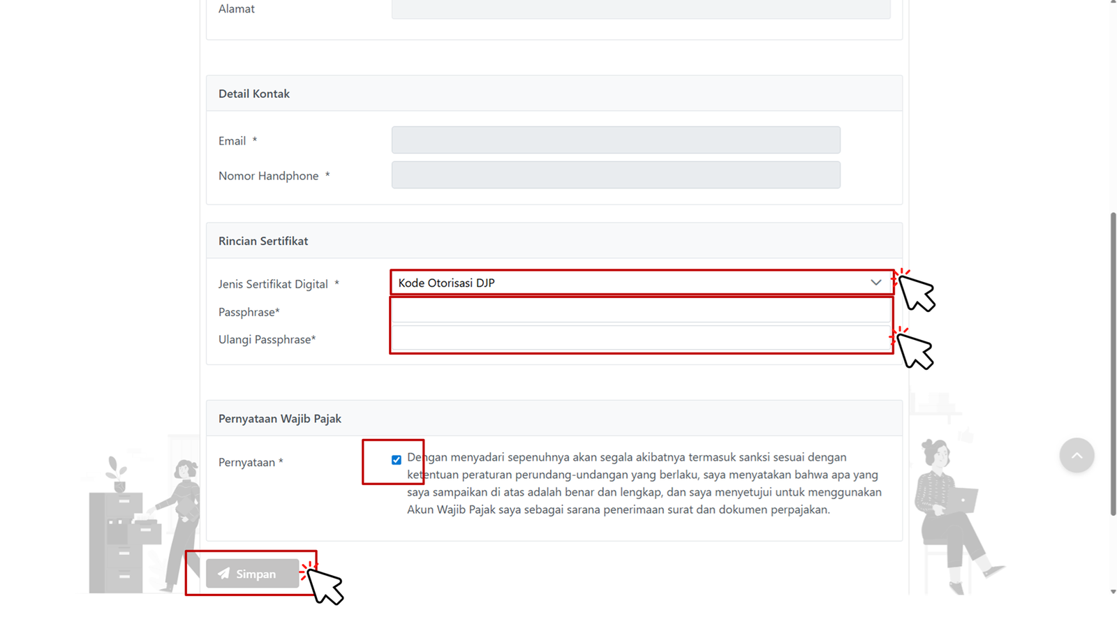 Centang Pernyataan Wajib Pajak lalu Klik Tombol Simpan