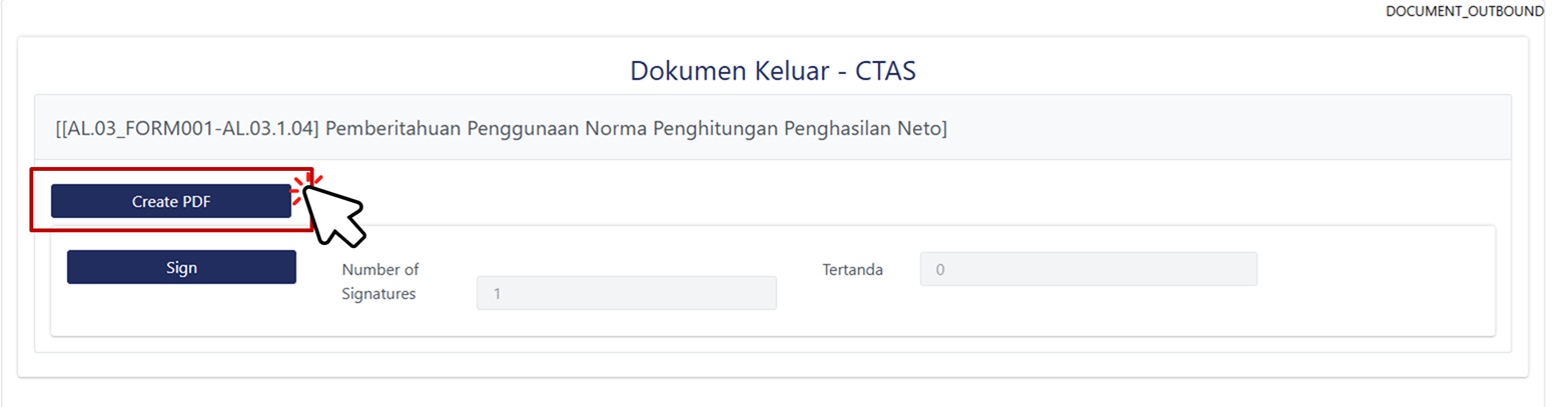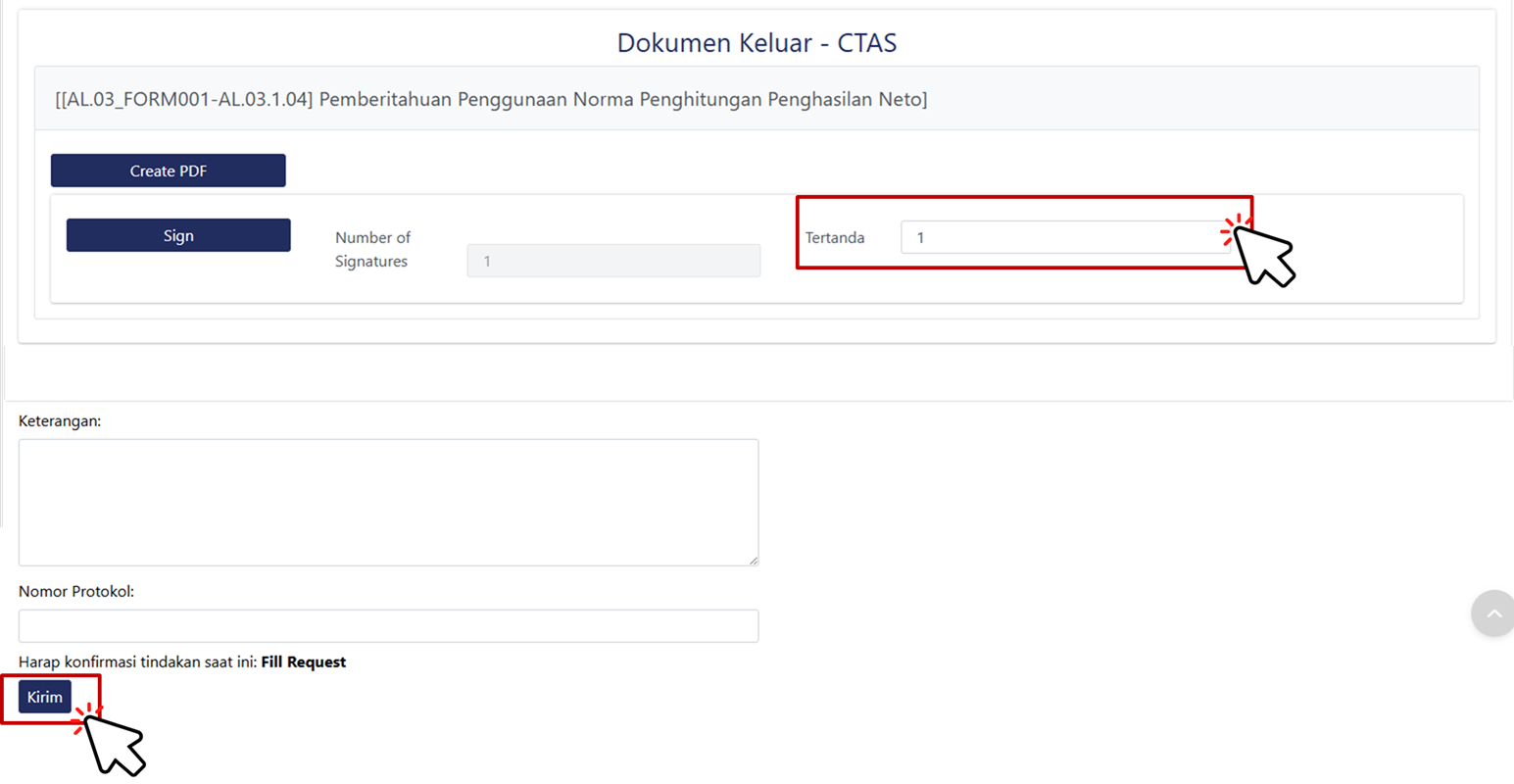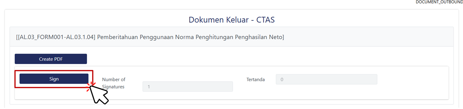 Angka 1 akan muncul pada "Tertanda" jika dokumen berhasil ditandatangani