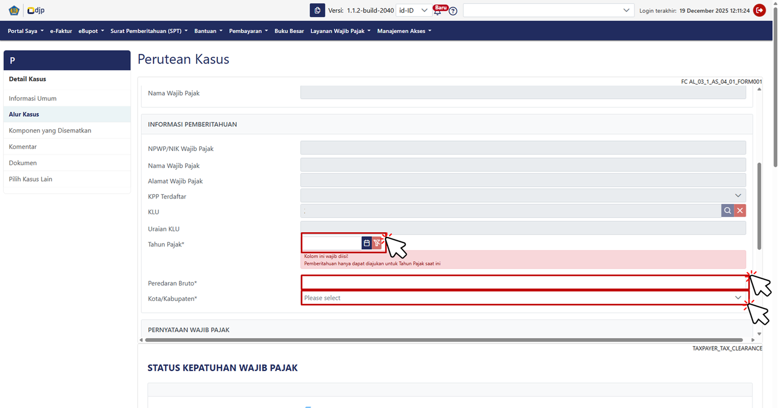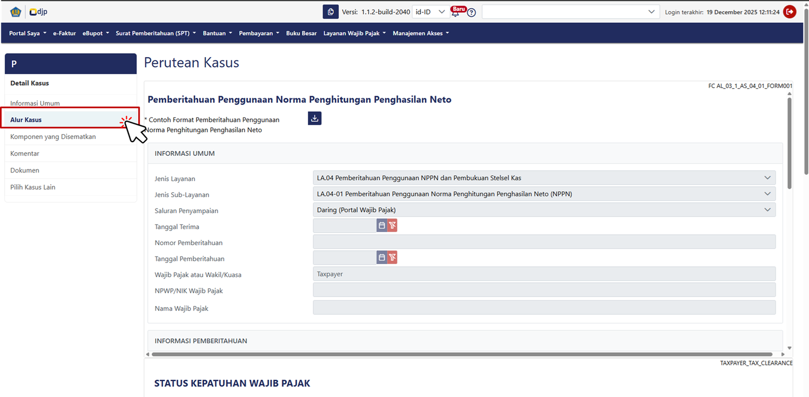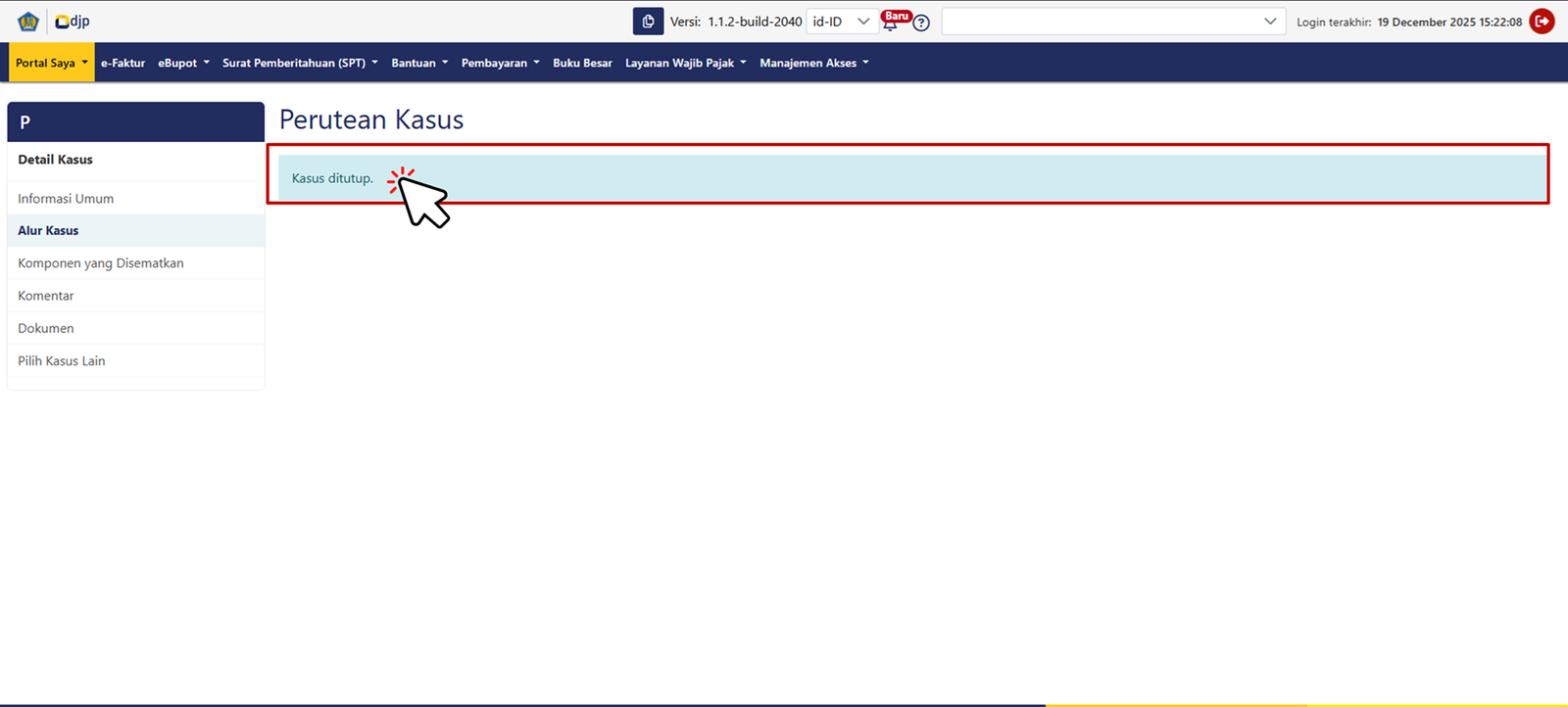 Kasus akan terbentuk, Klik Alur Kasus dan tunggu hingga halaman berhasil muncul sempurna