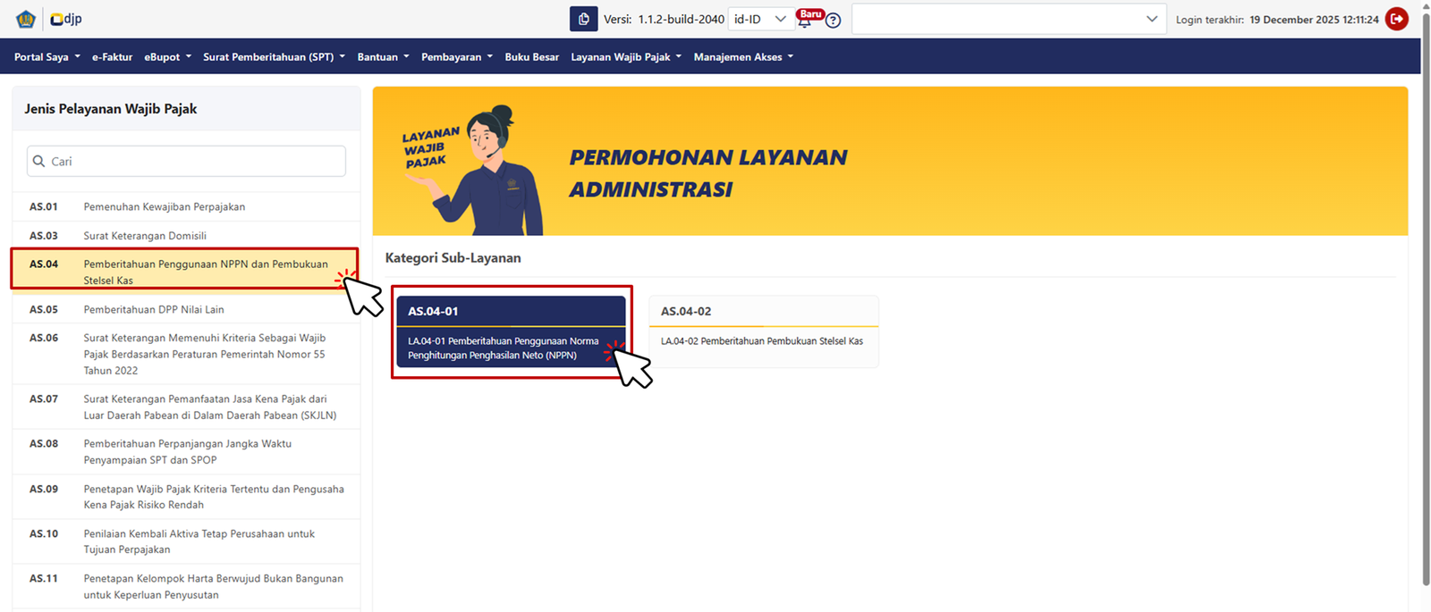 Klik AS.04 "Pemberitahuan Penggunaan NPPN dan Pembukuan Stelsel Kas" Lalu Pilih AS.04-01