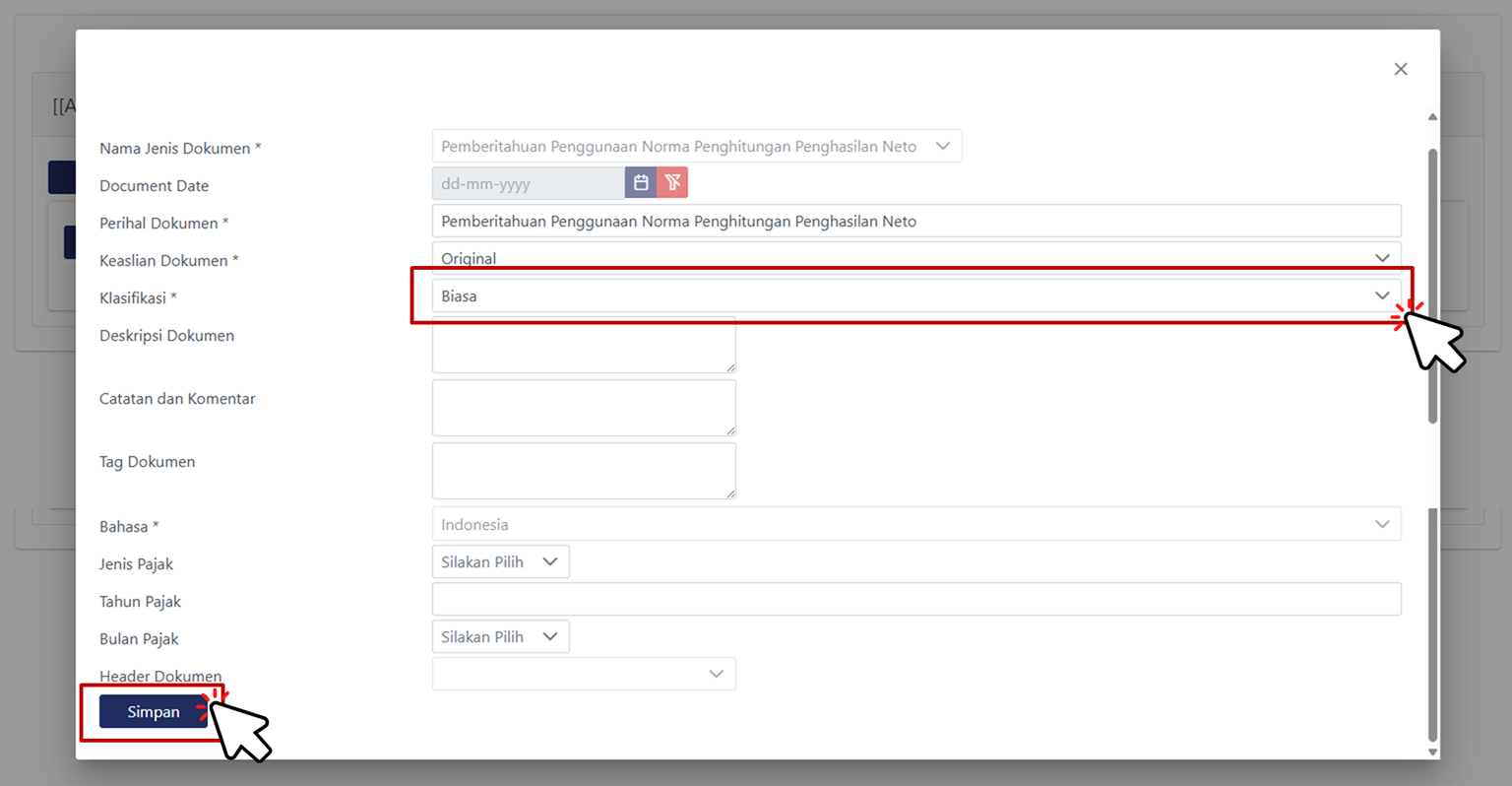 Pada bagian Klasifikasi isi Biasa lalu Klik Tombol Simpan