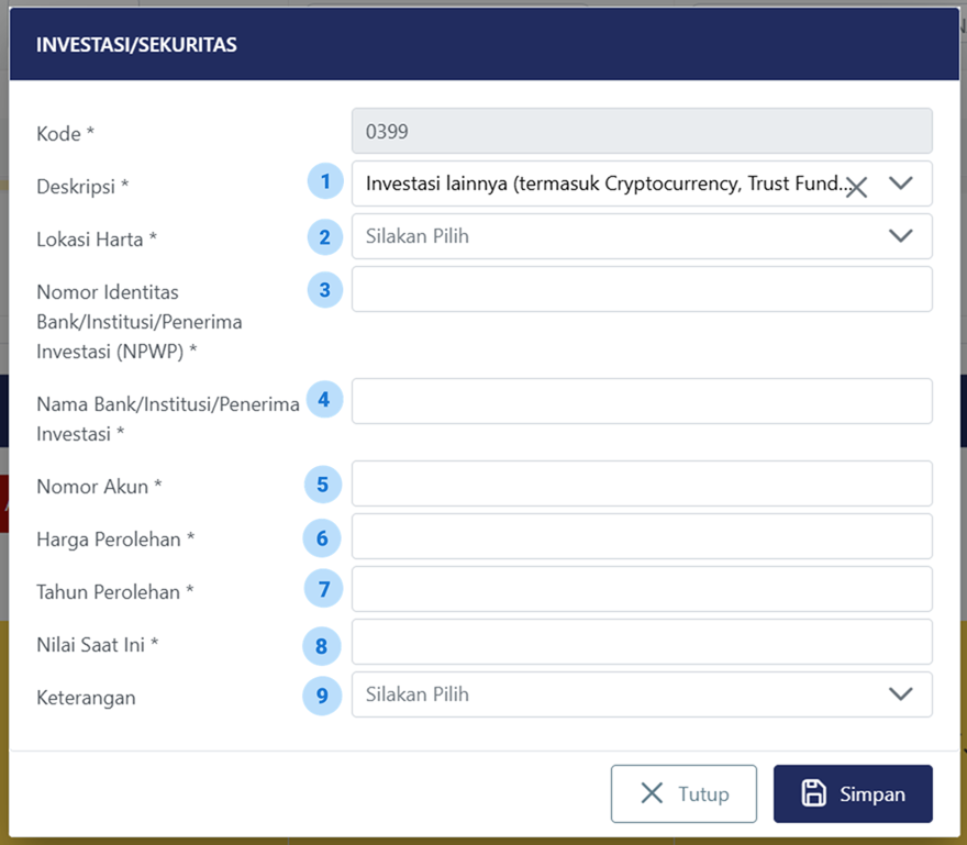 2 | Lokasi Harta | Diisi negara tempat investasi/sekuritas ditempatkan |