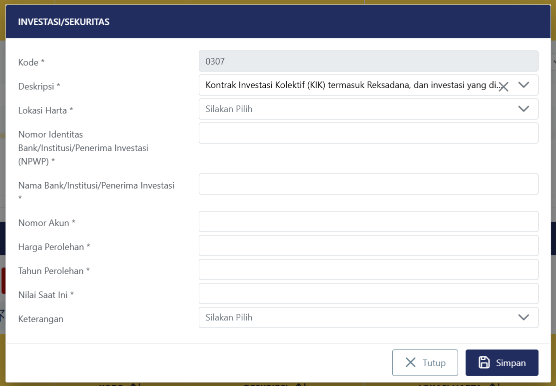 2 | Lokasi Harta | Diisi negara tempat investasi/sekuritas ditempatkan |