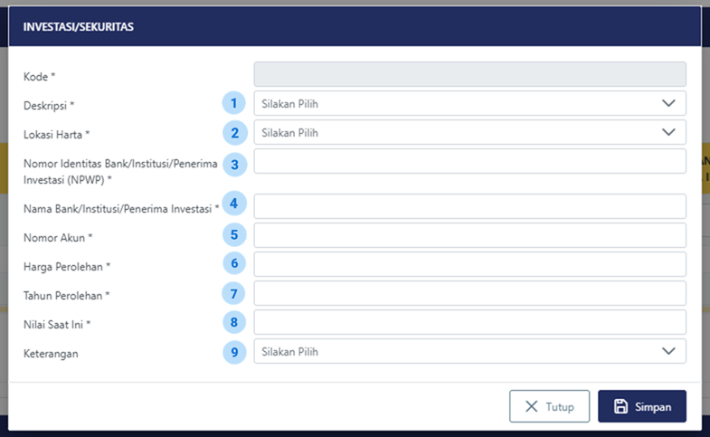 2 | Lokasi Harta | Diisi negara tempat investasi/sekuritas ditempatkan |