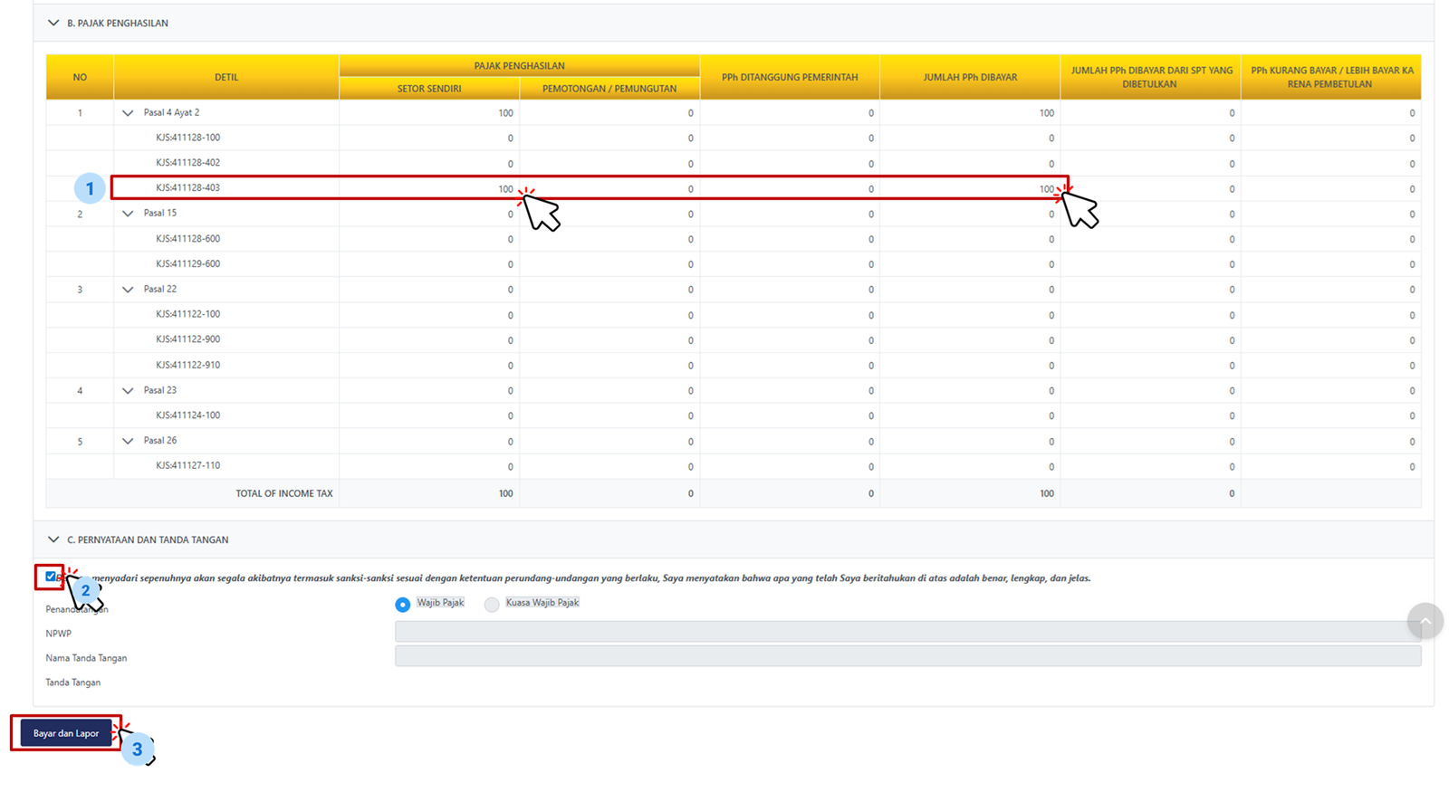 Klik Tombol Bayar dan Lapor