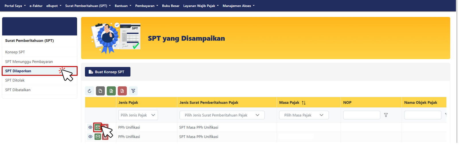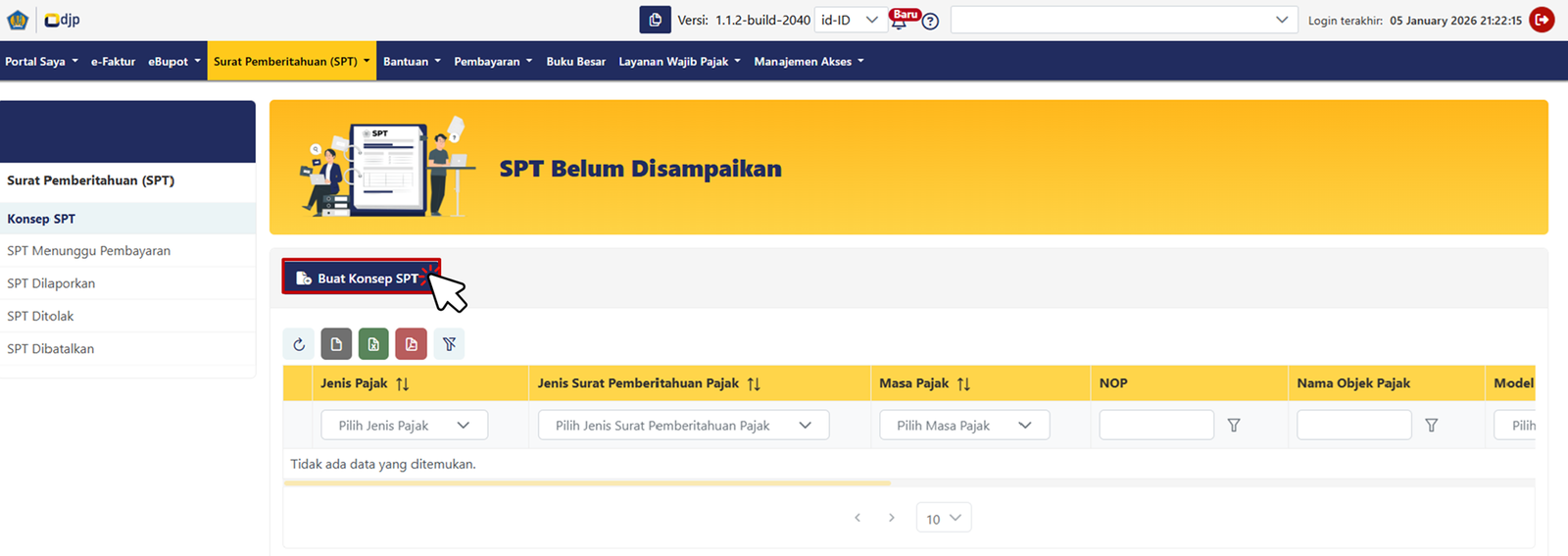 Klik Buat Konsep SPT
