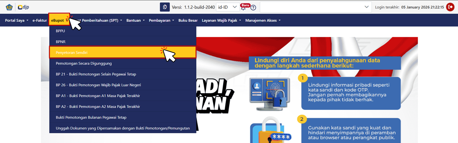 Pilih eBupot --> Penyetoran Sendiri.