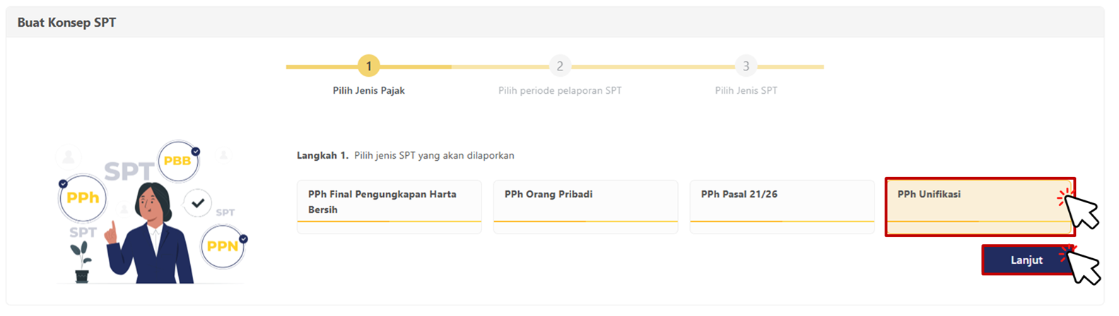Pilih PPh Unifikasi lalu Klik Lanjut