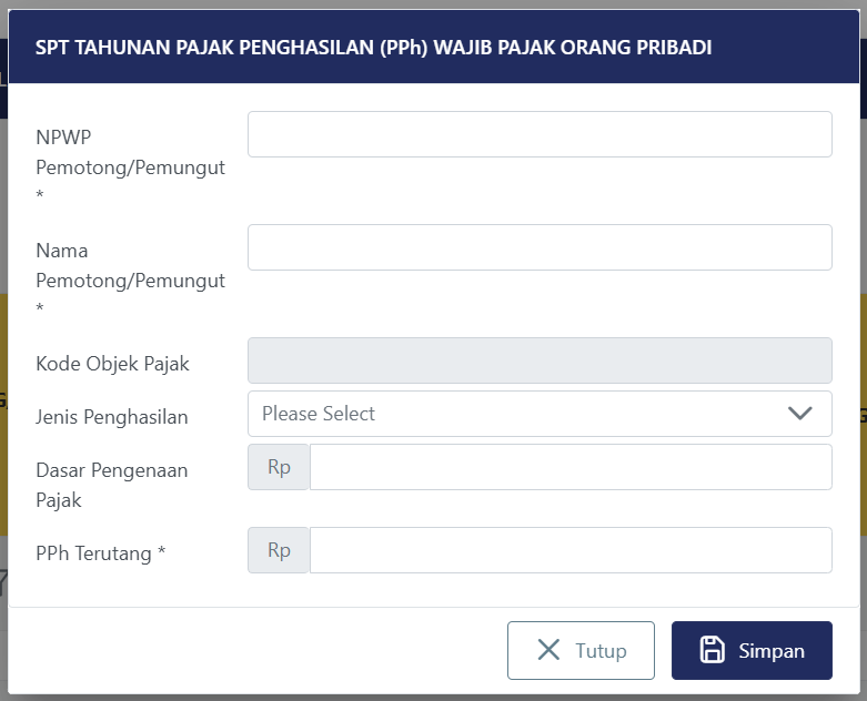 Pada Jenis Periode SPT pilih SPT Tahunan