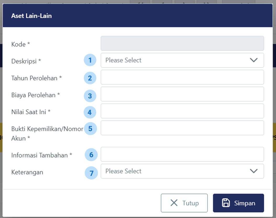 7 | Keterangan | Pilihan berupa (Harta PPS/Harta Investasi PPS) hanya diisi apabila jenis harta terkeit dengan pelaksanaan program pengungkapan sukarela (PPS) |